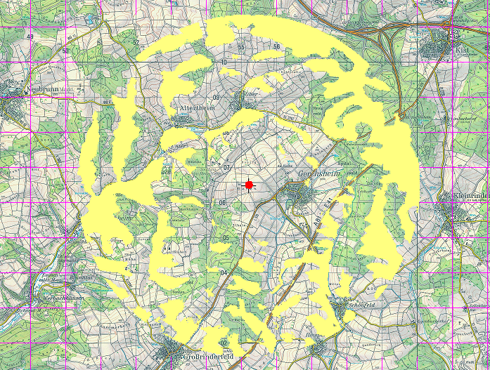 Die Mitglieder der RK-Großrinderfeld bei der Windradbesteigung Bilder der Monatsversammlung am Windrad Die erste Klettergruppe Fototermin vor dem Klettern Im inneren des Windrades, Schaltschrank und der Weg nach oben Der Eingang Aufstig zum Rotor Blick nach unten vom ersten drittel.... Im Rotorgehäuse... Der Ausblick von oben....... einfach genial.... Auch für das leibliche Wohl war gesorgt Wie bei jeder Veranstaltung, unser 2ter Vorsitzender beim Essen erwischt... Der Rote Punkt kennzeichnet das Windrad, der gelbe Bereich ist der NICHT einsehbare Bereich, aus 90m Höhe... gemacht, mit GeoGrid |<<- zurück